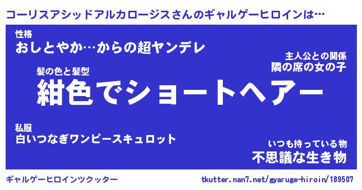 | 男性向けラノベタイトル風あだ名 | 『コーリスアシッドアルカロージスアートオンライン』 |