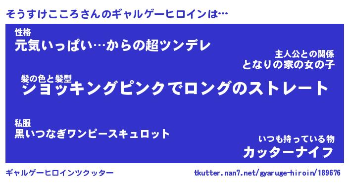 | 女子向けラノベタイトル風あだ名 | 『(仮)そうすけこころのやんごとなき事情』 |