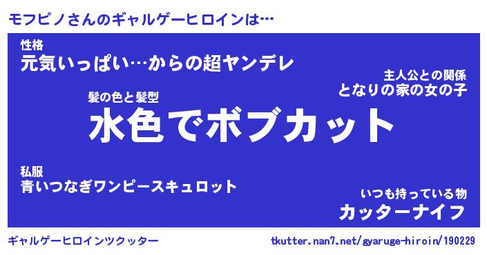 | 男性向けラノベタイトル風あだ名 | 『モフピノの憂鬱』 |