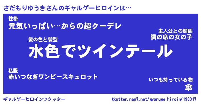 | 男性向けラノベタイトル風あだ名 | 『さだもりゆうきの憂鬱』 |