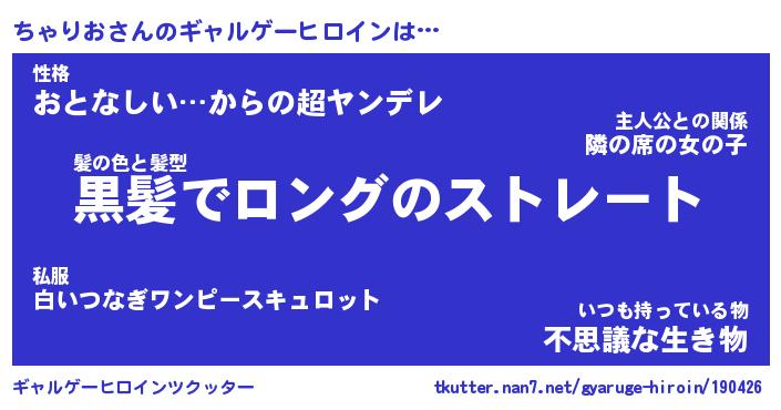 | ファンタジー風あだ名 | 『チャフェル』『エターナルチャリオー』 |