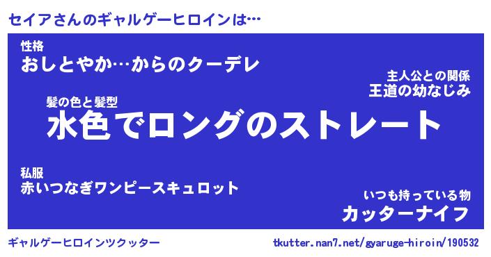 | 男性向けラノベタイトル風あだ名 | 『セイアの憂鬱』 |
