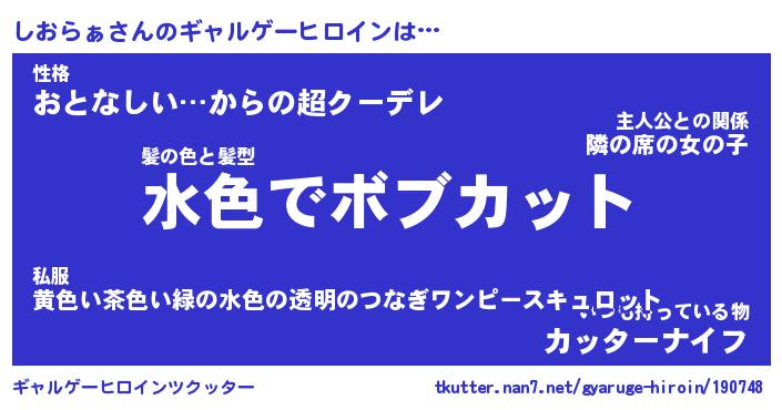 | ファンタジー風あだ名 | 『シオフェル』『エターナルシオラァー』 |