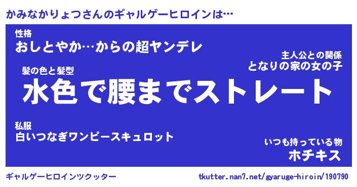 | 男性向けラノベタイトル風あだ名 | 『かみなかりょつの憂鬱』 |