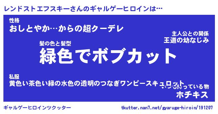 | 料理風あだ名 | 『ネギたっぷりレンドストエフスキーの南蛮漬け』 |
