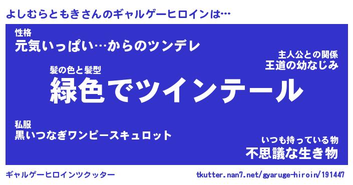 | 伝説のあだ名 | 『封印されし竜騎士よしむらともき』 |