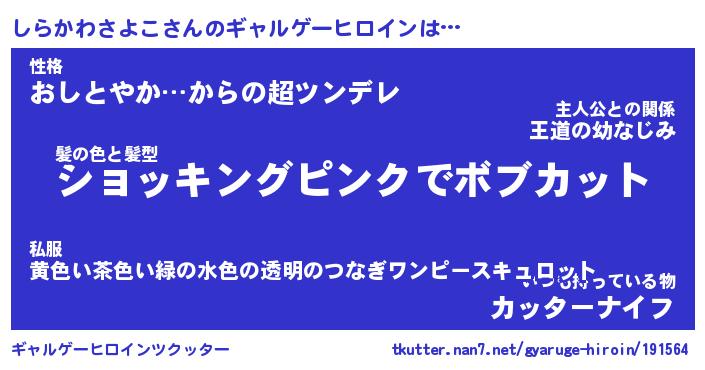 | 男性向けラノベタイトル風あだ名 | 『しらかわさよこの憂鬱』 |