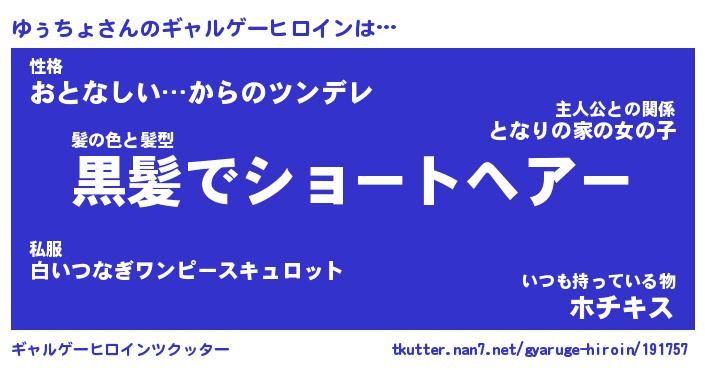 | ファンタジー風あだ名 | 『ユゥフェル』『エターナルユゥチョー』 |