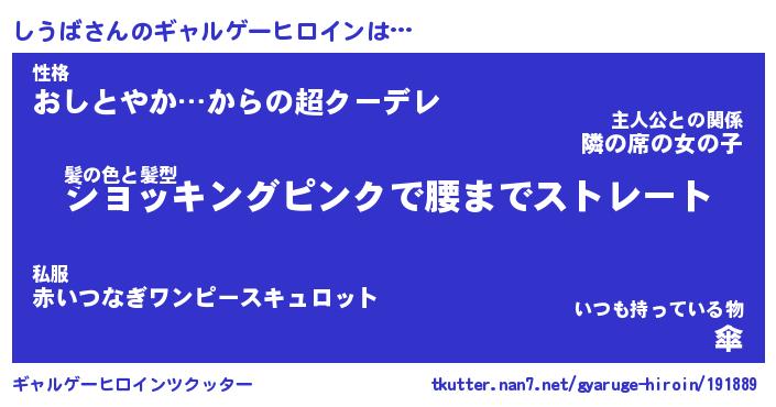 | 男性向けラノベタイトル風あだ名 | 『しうばの憂鬱』 |