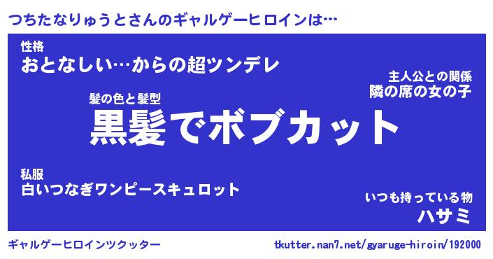 | 男性向けラノベタイトル風あだ名 | 『つちたなりゅうとの憂鬱』 |