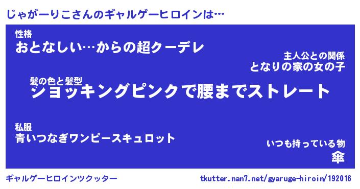 | 女子向けラノベタイトル風あだ名 | 『(仮)じゃがーりこのやんごとなき事情』 |