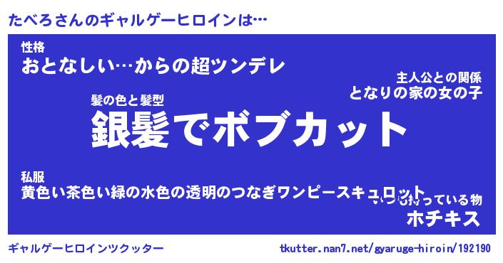 | ファンタジー風あだ名 | 『タベフェル』『エターナルタベロー』 |