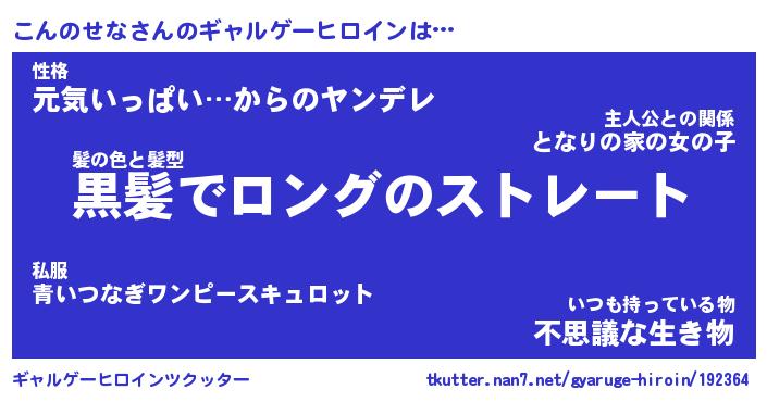 | 男性向けラノベタイトル風あだ名 | 『こんのせなの憂鬱』 |