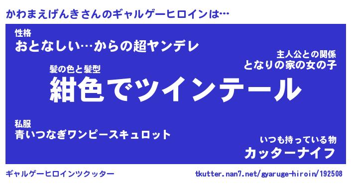| 男性向けラノベタイトル風あだ名 | 『カワマエゲンキアートオンライン』 |