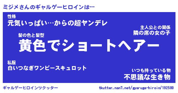 | ファンタジー風あだ名 | 『ミジフェル』『エターナルミジメー』 |