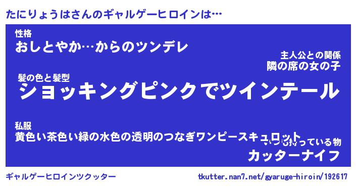 | ヒーロー風カッコイイあだ名 | 『スーパータニリョウハ』『暗黒騎士タニ』 |