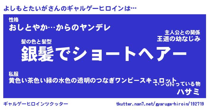 | ヘコむあだ名 | 『よしにー』『つくし』『よし太郎』 |