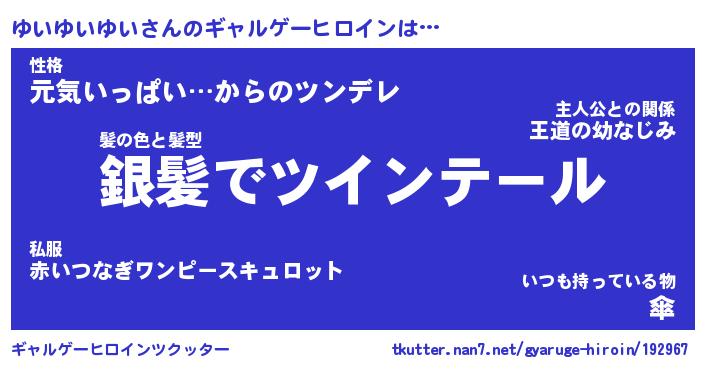 | ヒーロー風カッコイイあだ名 | 『スーパーユイユイユイ』『銀牙騎士ユイ』 |