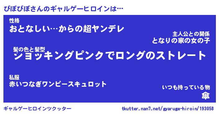 | 意味不明あだ名 | 『ペロリンびぼびぼ』『永久保存びぼびぼ』 |