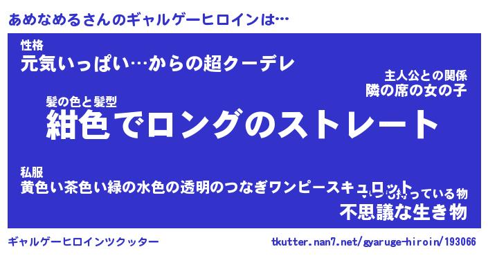 | ファンタジー風あだ名 | 『アメフェル』『エターナルアメナメルー』 |