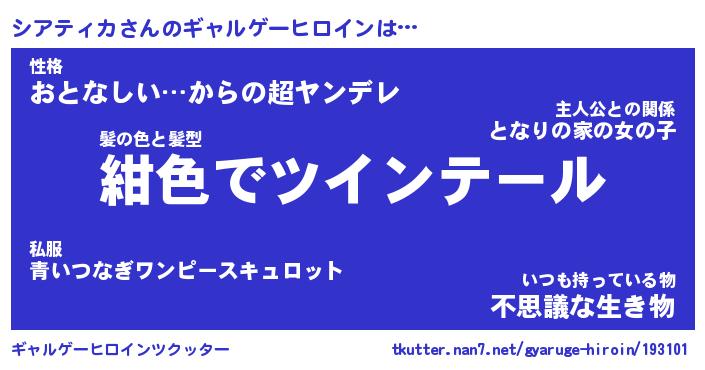 | ファンタジー風あだ名 | 『シアフェル』『エターナルシアティカー』 |