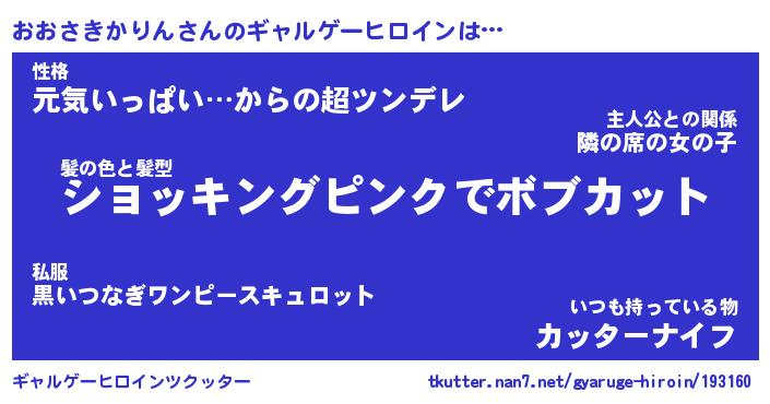 | 男性向けラノベタイトル風あだ名 | 『おおさきかりんの憂鬱』 |