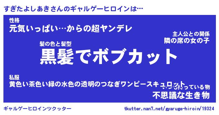 | 女子向けラノベタイトル風あだ名 | 『(仮)すぎたよしあきのやんごとなき事情』 |