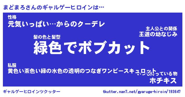 | ヘコむあだ名 | 『まどふぇ~』『なまこ酢』 |