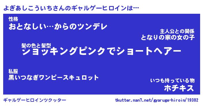 | 女子向けラノベタイトル風あだ名 | 『(仮)よぎあしこういちのやんごとなき事情』 |