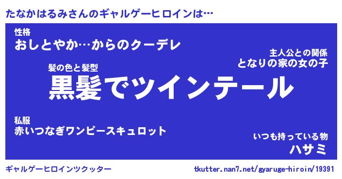 | 女子向けラノベタイトル風あだ名 | 『(仮)たなかはるみのやんごとなき事情』 |
