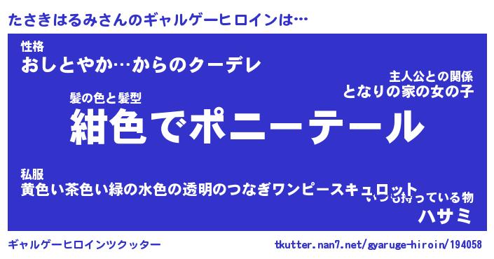 | 男性向けラノベタイトル風あだ名 | 『タサキハルミアートオンライン』 |
