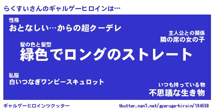 | 意味不明あだ名 | 『ペロリンらくすい』『永久保存らくすい』 |