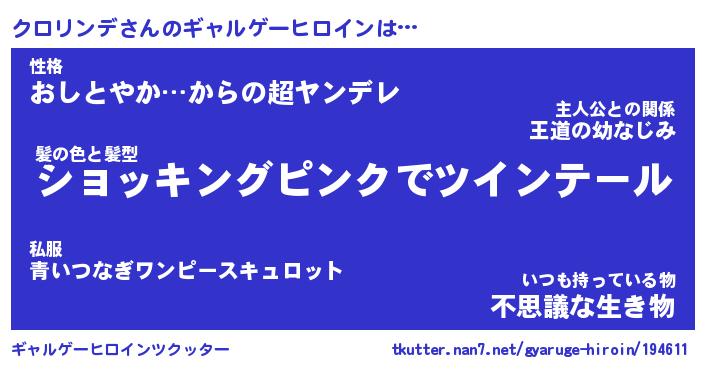 | ファンタジー風あだ名 | 『クロフェル』『エターナルクロリンデー』 |