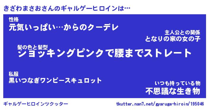| 女子向けラノベタイトル風あだ名 | 『(仮)きざわまさおのやんごとなき事情』 |