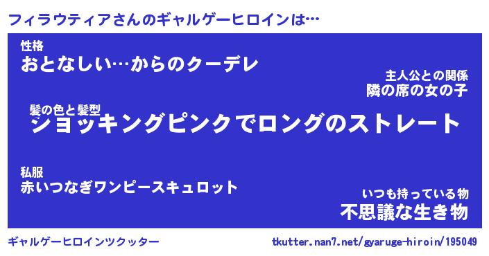 | 男性向けラノベタイトル風あだ名 | 『フィラウティアの憂鬱』 |