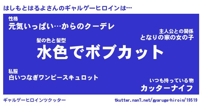 | 女子向けラノベタイトル風あだ名 | 『(仮)はしもとはるよのやんごとなき事情』 |
