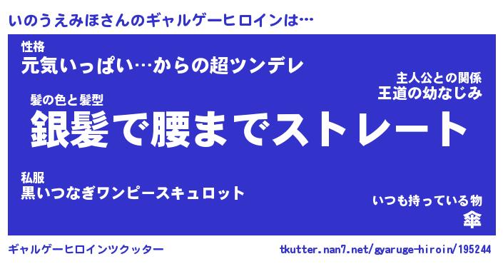 | 男性向けラノベタイトル風あだ名 | 『いのうえみほの憂鬱』 |