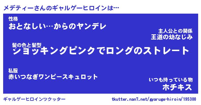 | 男性向けラノベタイトル風あだ名 | 『メデティーの憂鬱』 |
