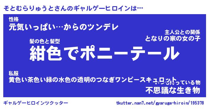 | 肩書あだ名 | 『そとむらりゅうと御曹司』 |