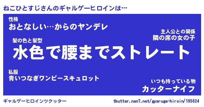 | ヘコむあだ名 | 『ねこにゅー』『酢こんぶ』『ねこを』 |