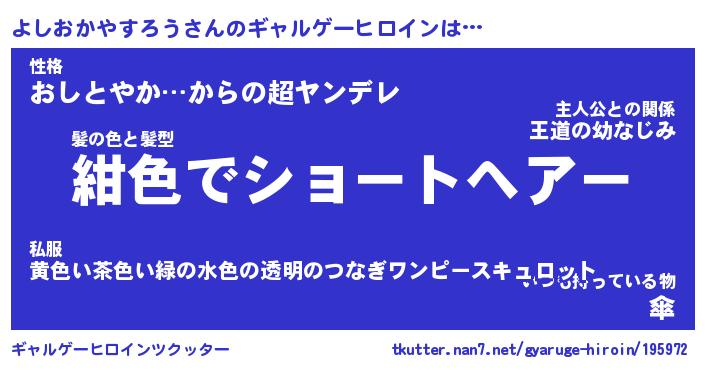 | 女子向けラノベタイトル風あだ名 | 『誰かこのよしおかやすろうを説明してください! ~契約から始まるウェディング~』 |