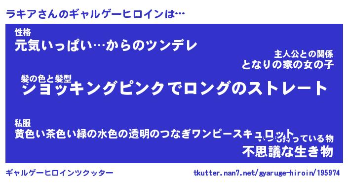 | ファンタジー風あだ名 | 『ラキフェル』『エターナルラキアー』 |