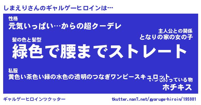 | ファンタジー風あだ名 | 『シマフェル』『エターナルシマエリー』 |