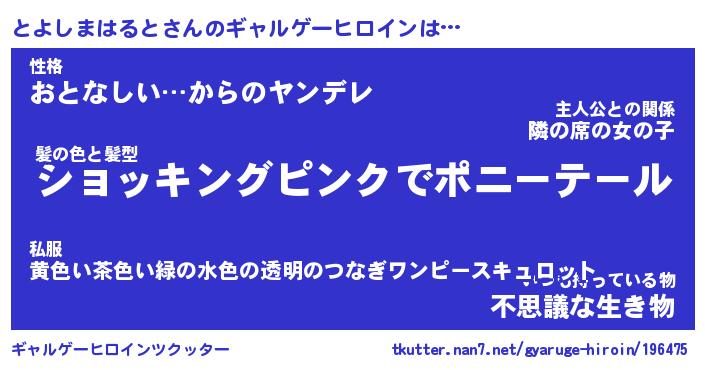 | 女子向けラノベタイトル風あだ名 | 『(仮)とよしまはるとのやんごとなき事情』 |