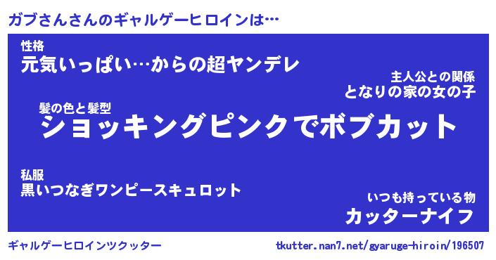 | 意味不明あだ名 | 『ペロリンガブさん』『永久保存ガブさん』 |