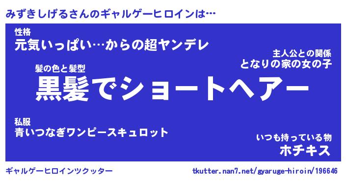 | ヒーロー風カッコイイあだ名 | 『スーパーミズキシゲル』『幻影騎士ミズ』 |