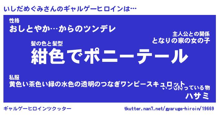 | 伝説のあだ名 | 『封印されしスナイパーいしだめぐみ』 |