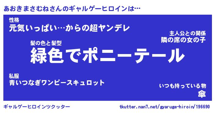 | 肩書あだ名 | 『あおきまさむね御曹司』 |