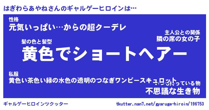 | 恥ずかしいあだ名 | 『プリティーはぎわらあやね』『はぎちん』 |