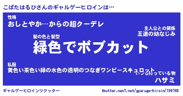 | ツイッター | こばたはるひさんのツイッターID『dendenmushi_idle』 |